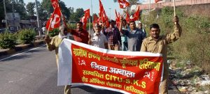 नारायणगढ़ 18 अक्तूबर | ग्रामीण सफाई कर्मचारी यूनियन (सम्बंधित सीटू ) के आह्वान पर नारायणगढ़ में ब्लाक प्रधान बीर सिंह व शहज़ादपुर में ब्लाक प्रधान संजीव कुमार की अध्यक्षता में सैंकड़ो सफाई कर्मचारियो ने भाजपा-जजपा सरकार की हठधर्मिता व पंचायत मंत्री की वायदाखिलाफी के विरोध में प्रदर्शन किया।